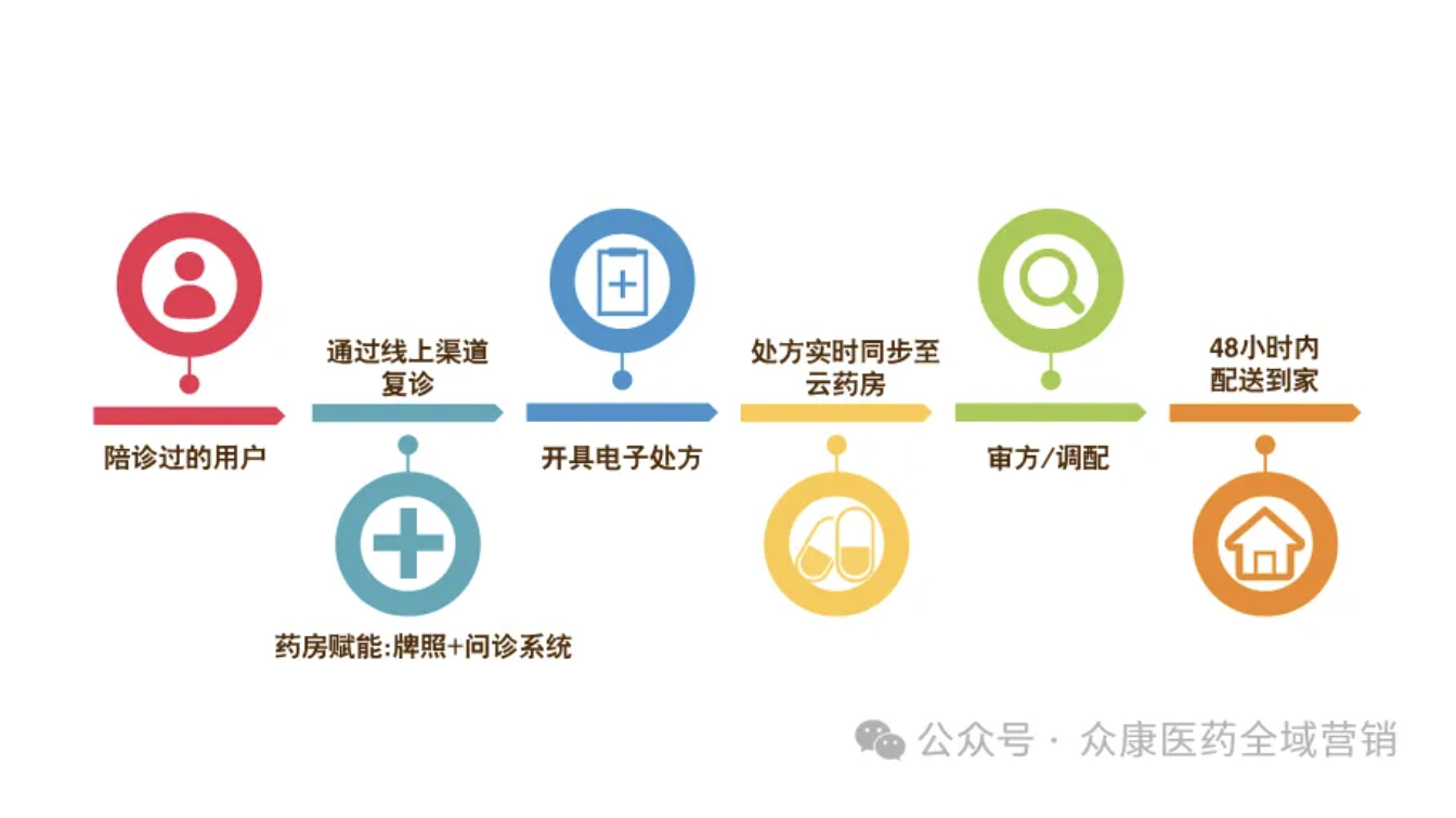 线上问诊/复诊窗口介入:陪诊平台或我方云药房的线上问诊/复诊窗口向用户推荐中医健康管理产品包。