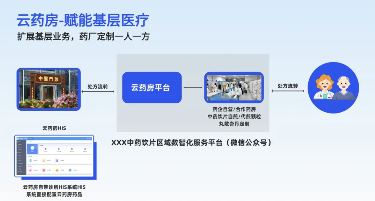 众康云智慧云药房系统对接医院HIS与互联网平台,实现处方实时流转,支持自煎、代煎、颗粒等多剂型一件代发,数据化运营优化库存与配送。